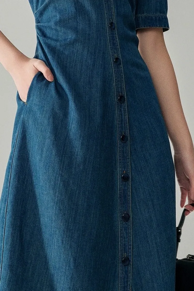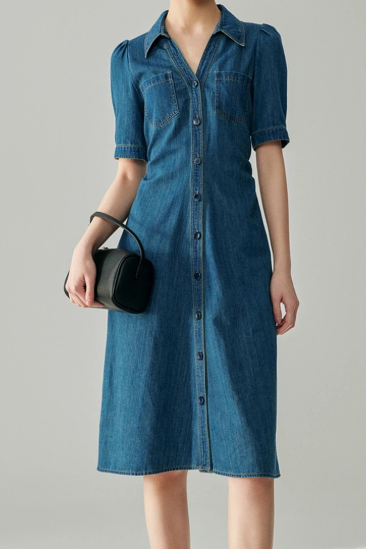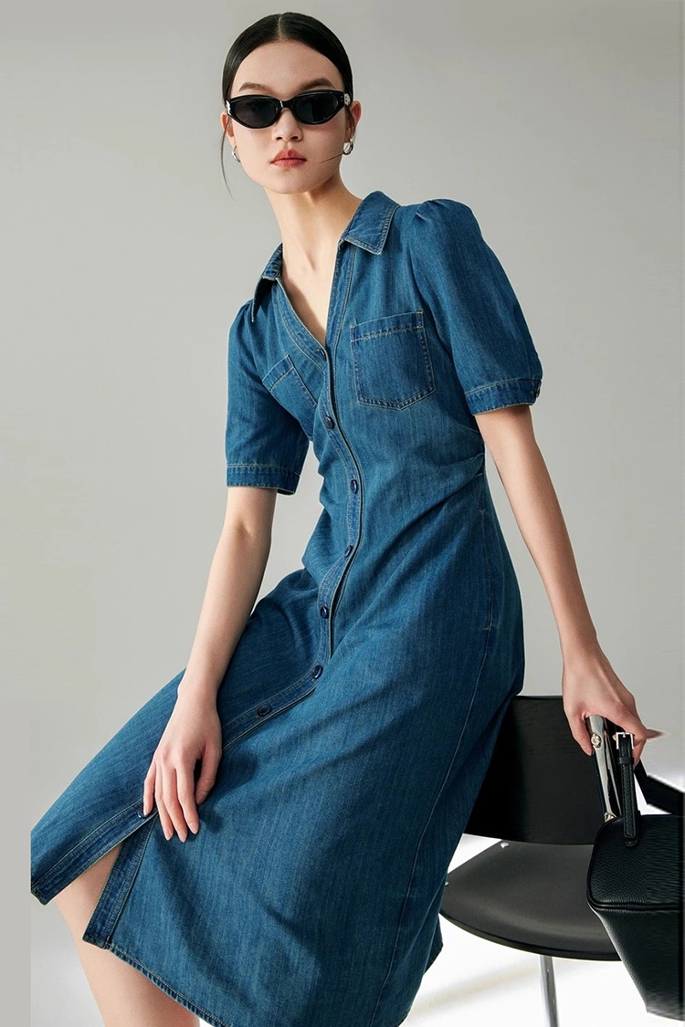 Naisten Jeans Cotton Classy Dress on valmistettu 100 % korkealaatuisesta puhtaasta puuvillasta, joka on yksi suosituimmista materiaaleista keväällä ja syksyllä. Siinä on erinomainen hengittävyys ja kosteutta imevä, pehmeä ja mukava käyttää, se ei ärsytä, sopii kaikille ihotyypeille ja sillä on erinomainen sitkeys, kestävyys ja pestävä. Pesun jälkeen se ei irtoa, muotoile tai haalistu, se voi säilyttää suoran ja pullean muodon pitkään, sillä on alhaiset myynnin jälkeiset kustannukset ja se sopii erityisen hyvin arki- ja työmatkamekkoihin. Se on myös tämän tuotteen ydinmateriaalietu.