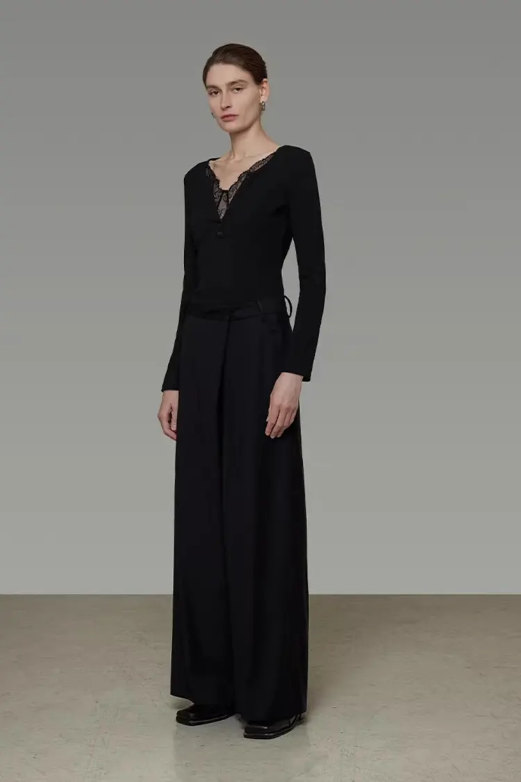 Pääntie on koristeltu hienoilla pitsireunoilla, jotka lisäävät klassiseen mustaan mekkoon pehmeyttä ja romantiikkaa, kirkastaen tehokkaasti yleisilmettä ja tekevät perustyylistä tasokkaamman. Pitsimateriaali on pehmeää eikä ärsytä ihoa. Reunat ovat sileät ja hienot, eikä se todennäköisesti muotoile tai käpristy pitkäaikaisen käytön jälkeen. Se ei vain paranna ulkonäköä, vaan myös varmistaa käytännöllisyyden, mikä tekee siitä täydellisen kuluttajille, jotka arvostavat yksityiskohtaista rakennetta.