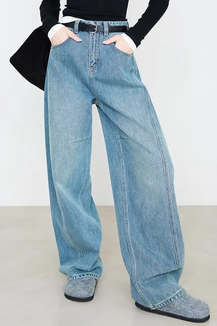 Naisten leveälahkeiset farkkuhousut on valmistettu 100 % puhtaasta puuvillasta, ja niissä on erinomainen hengittävyys ja pehmeys ja ne ovat ihoystävällisiä. Se on mukava päällä, eikä se tunne sinua kuumana edes pitkän käytön jälkeen. Se voi pitää sinut viileänä kuumalla säällä ja tarjota riittävästi lämpöä viileinä päivinä.